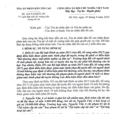 Công văn số 163/TANDTC-PC về việc giải đáp một số vướng mắc trong xét xử của Toà án nhân dân tối cao